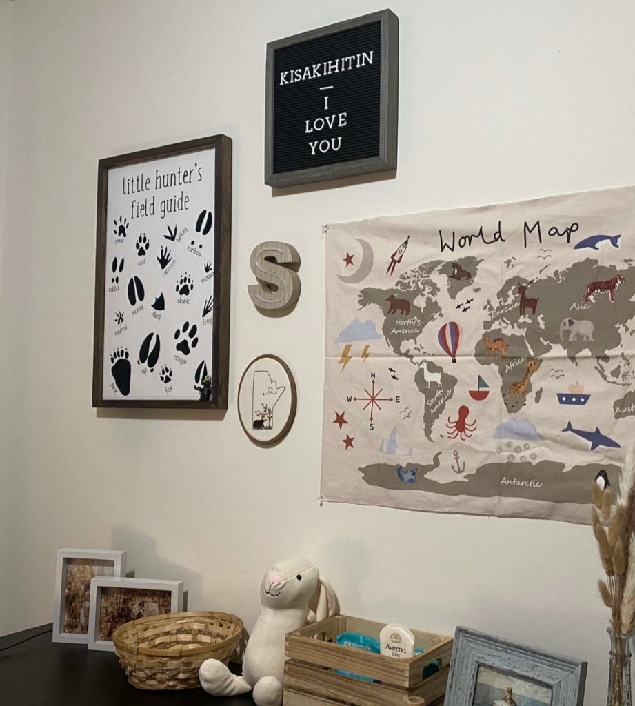 I don’t speak Cree and neither does Clint, so I picked up a small whiteboard to keep on the fridge and each week we pick a new word, write it on the whiteboard and practice saying it over and over. We also, of course, get him involved in saying it.