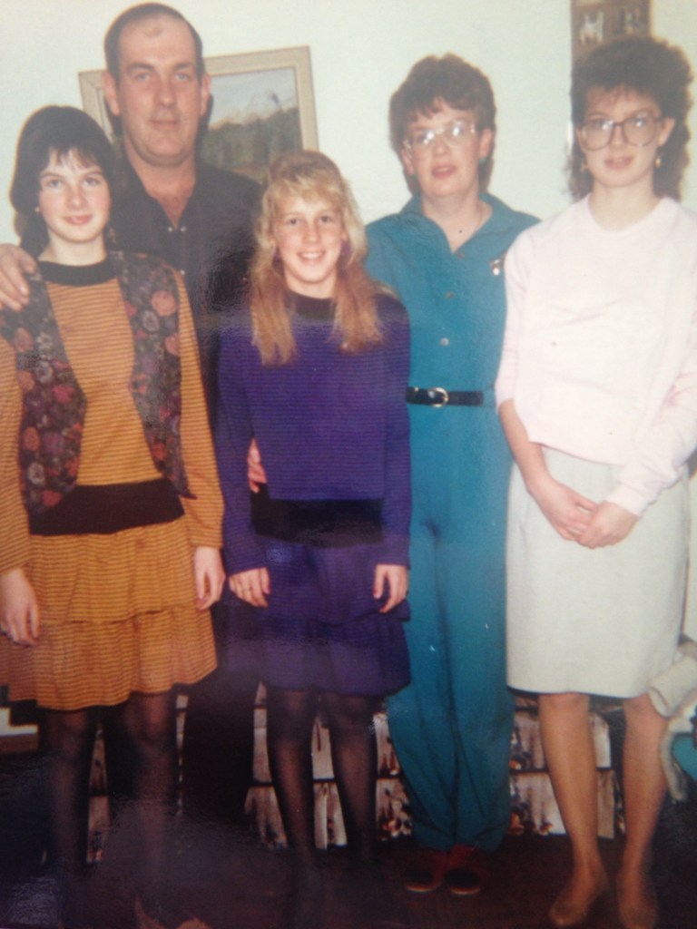 I think we were going to my cousin’s wedding, late 80’s? Gena & I had the same dress except mine was that ugly mustard colour so I threw on that paisley vest to juj it up! (Or so I thought)