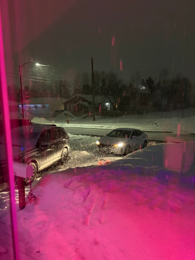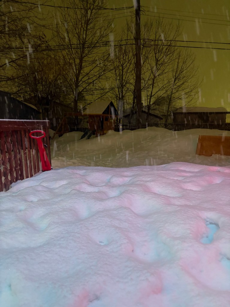 Looking out the patio doors last night, keep in mind the deck has been shoveled off multiple times this winter so the snow you see right here is just in the last week